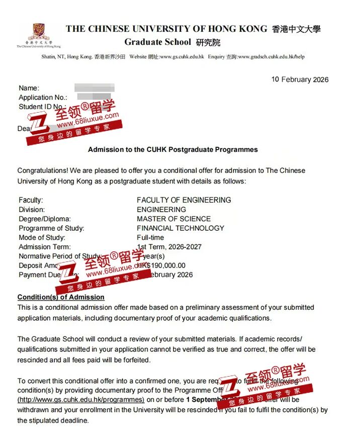 录取结果:香港中文大学金融科技硕士录取