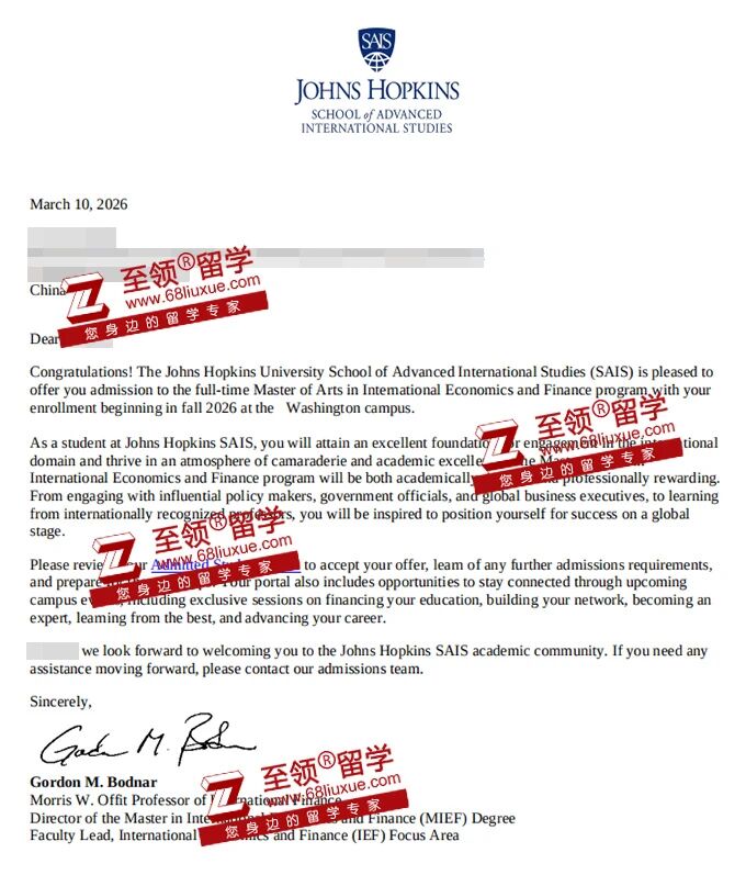 录取结果:约翰霍普金斯大学,国际经济与金融硕士录取