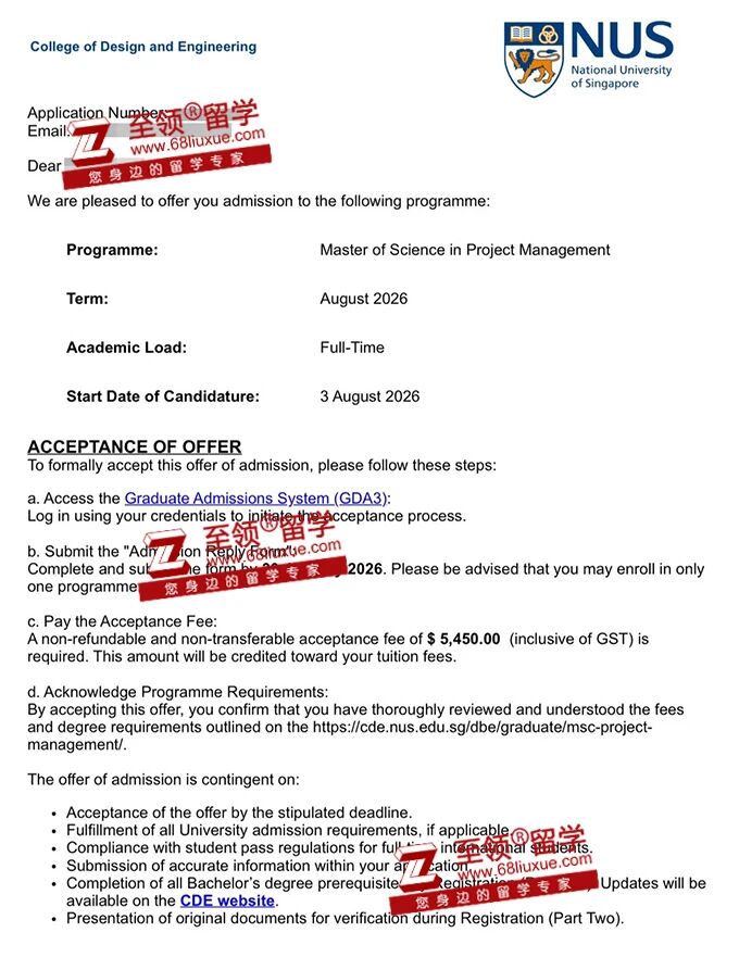 录取结果:新加坡国立大学项目管理硕士录取